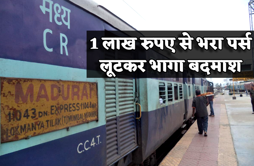 इस संबंध में महिला यात्री के पति फरियादी जमीरुद्दीन पिता जमालुद्दीन (64) निवासी पूर्वी सरोस, जिला हमीदपुर उप्र ने जीआरपी थाना भोपाल में शिकायत दर्ज कराई है कि उनकी पत्नी मदुरई एक्सप्रेस से विगत दिनों एसी कोच बी-5 में बर्थ क्रमांक 71 पर यात्रा कर रही थी। इस बीच पांढुरना और मुलताई स्टेशन के बीच महिला का पर्स अज्ञात लुटेरा छीन कर चलती ट्रेन से कूदकर भाग गया। पर्स में एक लाख रुपए नकद, सैमसंग गैलेक्सी मोबाइल, आधार कार्ड, परिचय पत्र, घर की चाबी, चश्मा सहित उपयोग के जरूरी सामान थे। ट्रेन के भोपाल पहुंचने पर जीआरपी को शिकायत की गई।