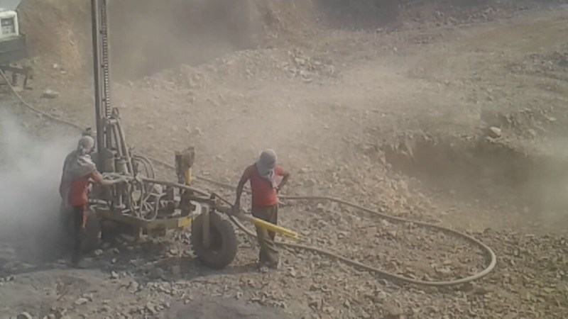 Workers blasting in ballast mines