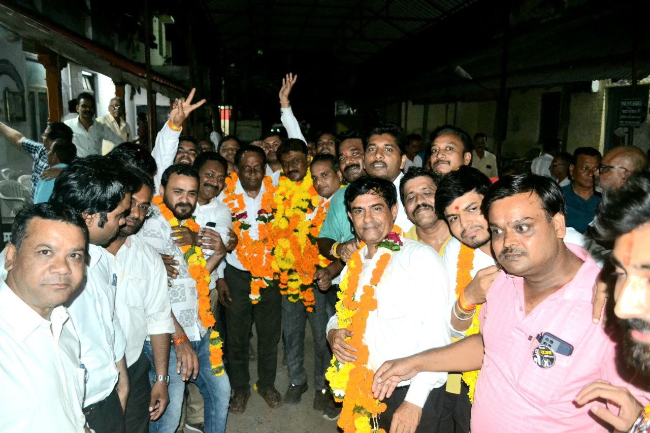 हरदा. जिला न्यायालय परिसर में विजयी पदाधिकारियों का स्वागत करते अधिवक्तागण।