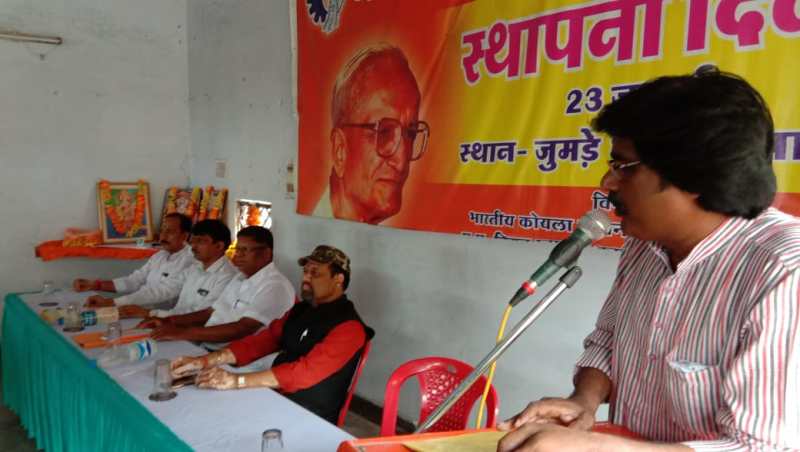 सारनी. भारतीय मजदूर संघ का 64वां स्थापना दिवस क्षेत्रीय कार्यलय जुमड़े भवन पाथाखेड़ा में मजदूर मिलन समारोह के रूप में मनाया। मानवता के लिए मुसाफिर किरण जगाने वाले हम, शोषित, पीडि़त, दलितजनों का भाग्य बनाने वाले हम गीत की प्रस्तुति से विजय मिश्रा ने कार्यक्रम की शुरूआत की। महामंत्री अशोक मालवीय ने कहा बीएमएस देश का सबसे बड़ा संगठन है। आज देशभर में बीएमएस के सर्वाधिक 1 करोड़ 69 लाख सदस्य है। 23 जुलाई 1955 को भोपाल में दत्तोपंत ठेंगड़ी ने बीएमएस की स्थापना की। 13 सदस्यों की संख्या से प्रारंभ हुआ बीएमएस आज विश्व का सबसे बड़ा संगठन के रूप में जाना जाता है। सुदामा सिंह ने कहा राष्ट्रहित, उधोगहित और मजदूर हित के लिए बना संगठन आज सर्वश्रेष्ठ संगठनों में एक है। उन्होंने कहा आज का दिन ऐतिहासिक है। बीएमएस की स्थापना करने वाले दत्तोपंत ठेंगड़ी राष्ट्र चिंतक और अर्थ शास्त्री थे। उन्होंने कहा मजदूरों को आज भी ईपीएफ नहीं मिलता। सुविधा नहीं मिलती। मजदूरों का शोषण आज भी हो रहा है। इसके विरोध में हम सबको एक होना पड़ेगा। कार्यक्रम को महासंघ के उपाध्यक्ष शिवदयाल बिसन्द्रे, महेंद्र सिंह ठाकुर, सुदामा सिंह, प्रकाश राव ने भी संबोधित किया। जुमड़े भवन में आयोजित मजदूर मिलन समारोह में पाथाखेड़ा क्षेत्र की विभिन्न खदानों में कार्य करने वाले ठेका मजदूरों ने अपनी समस्याएं रखी और उसके निराकरण की मांग संगठन के पदाधिकारियों से की। कमलेश पाल ने कहा हम मजदूर दिन रात मेहनत करते हैं। एवज में हमें ईपीएफ, जरूरी सुविधाएं नहीं मिलती।
