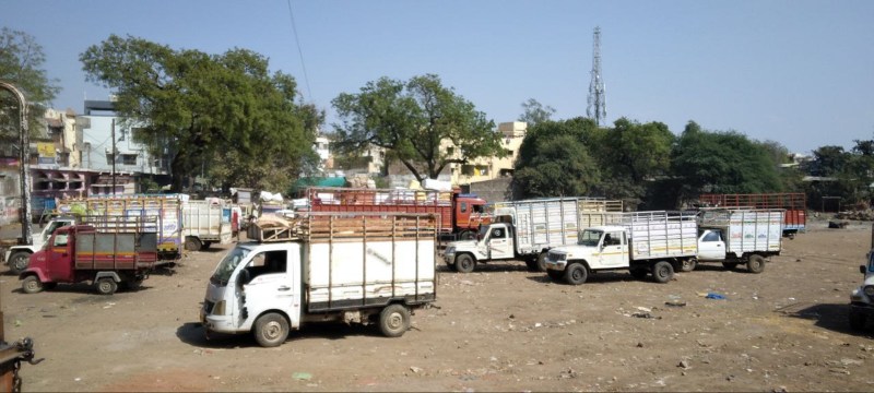 हरदा. ट्रांसपोर्टनगर नहीं होने से शहर के बीच मैदान में खड़े रहते हैं वाहन।
