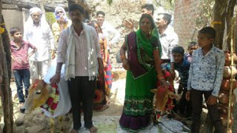 ग्राम आमाबघोली निवासी उमा राठौड़ ने गांव में बछड़ा और बछिया का विवाह कराया। इसके लिए राठौड़ ने बछड़ा और बछिया खरीदकर लाई। बछड़ा और बछिया की शादी के लिए शादी की सभी रस्में निभाई गई। शादी के लिए दोनों को दूल्हा और दुल्हन की तरह सजा गया था। सुबह के समय मंडा हुआ। इसके बाद अहिर प्रथा के अनुसार कपड़े किए गए। महिलाओं के संगीत कराए गए। गांव में बछड़े की बारात निकाली गई।