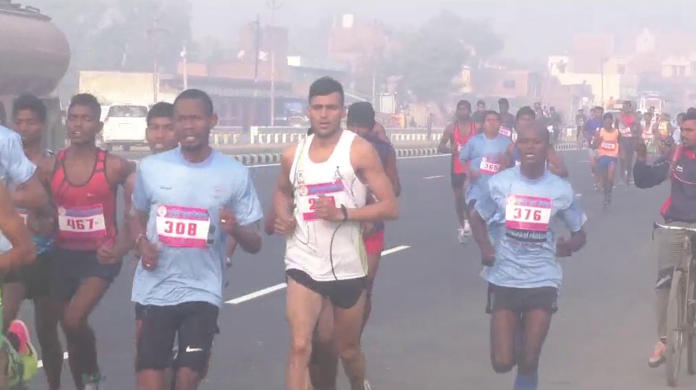 भदोही. ग्रामीण क्षेत्र के धावकों की प्रतिभा को बढ़ावा देने के उद्देश्य से भदोही जनपद में हाफ मैराथन आयोजित किया गया, जिसमें देश के ही नहीं बल्कि विदेशी धावकों ने भी भाग लिया। आयोजित सातवीं हाफ मैराथन 21 किलोमीटर के दौड़ में सेना के जवान ने विदेशी धावकों को पीछे करते हुए पहले स्थान पर कब्जा किया, जबकि केन्या के धावक भी पूरा दमखम दिखाते हुए दूसरे और तीसरे स्थान पर कब्जा करने में सफल रहे। वहीं केन्या का एक खिलाड़ी आठवें स्थान पर रहा।