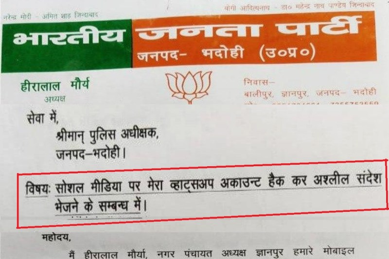 भदोही. यूपी के भदोही जिले में ज्ञानपुर नगर के चेयरमैन हीरालाल मौर्या के मोबाइल नम्बर से भाजपा जिलाध्यक्ष के व्हाट्सएप ग्रुप में महिला की न्यूड तस्वीर पोस्ट किए जाने से हड़कम्प मच गया।