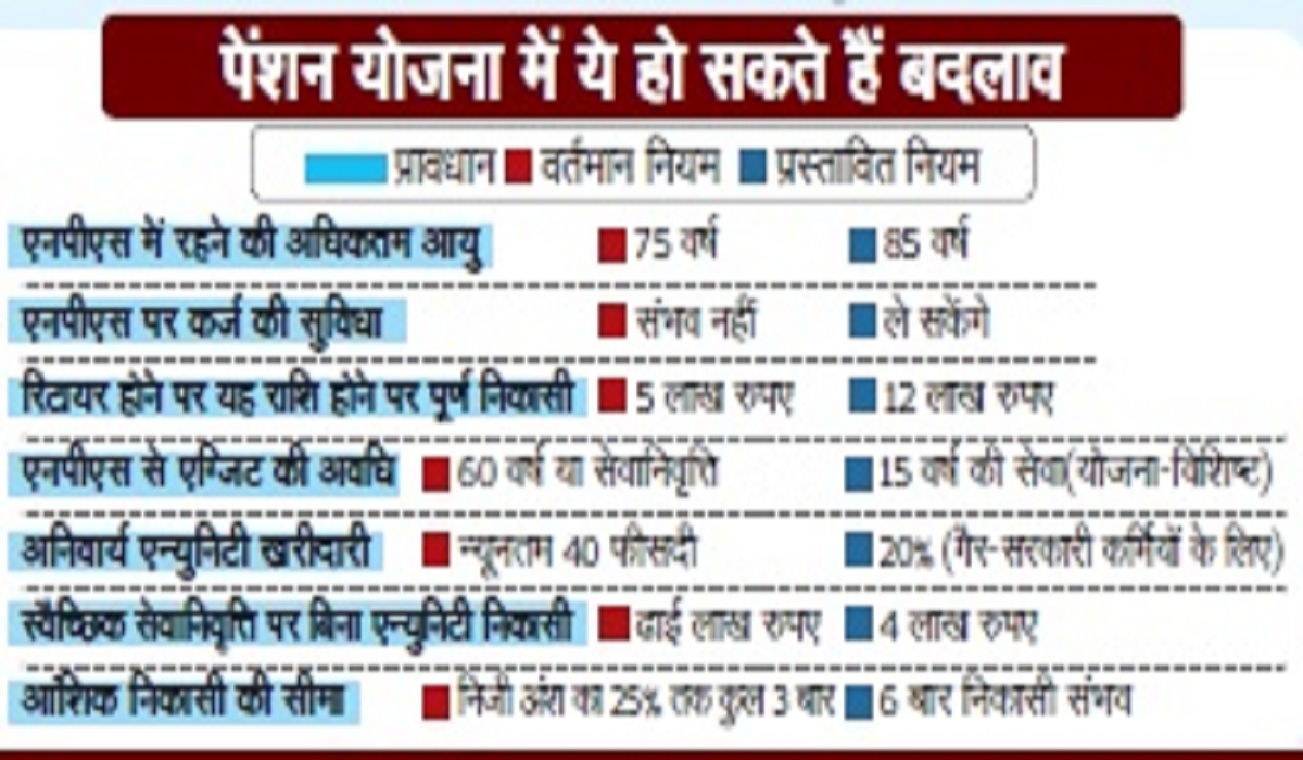 नई दिल्ली. सरकारी और गैर-सरकारी नौकरीपेशा के लिए महत्वपूर्ण न्यू पेंशन स्कीम (एनपीएस) मेंलाभार्थियों के लिए बड़े बदलाव की तैयारी है। इसके तहत गैर-सरकारी कर्मचारियों को स्कीम से बाहर निकलने के लिए सेवानिवृत्ति (60 वर्ष की आयु) तक इंतजार करने की जरूरत नहीं होगी बल्कि उन्हें 15 साल की सेवा के बाद ही एनपीएस छोड़ने की छूट होगी। साथ ही स्कीम से बाहर आने पर उन्हें जमा पूंजी की 40 फीसदी की राशि से वार्षिकी (एन्यूनिटी) खरीदने के बजाय 20 फीसदी की एन्यूनिटी ही खरीदनी होगी। एनपीएस की संचालक बीमा नियामक संस्था पीएफआरडीए ने एनपीएस में विभिन्न बदलावों का मसौदा पेश किया है। पीएफआरडीए का मानना है कि इन सुधारों से लचीलापन और तरलता बढेंगी और कर्मचारी एनपीएस के प्रति आकर्षित होंगे। मसौदे के तहत एनपीएस खाते को जारी रखने की अधिकतम डिफ़ॉल्ट आयु भी 75 से बढ़ाकर 85 वर्ष तक की जा सकती है। नियामक संस्था ने मसौदे पर हितधारकों से राय मांगी है जिन पर विचार कर इसे लागू किया जा सकता है।