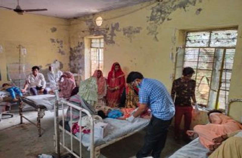 जानकारी के अनुसार गंाव अतवी निवासी दीन मोहम्मद के पुत्र निजामुद्दीन की गत 19 मई को शादी थी। जिस पर घर पर अन्य रिश्तेदार भी आए हुए थे। बताया जा रहा है कि सोमवार सुबह दही को बिलौने के बाद छाछ निकाली गई थी। यह छाछ सभी परिजनों को बांट दी जिसे पीने के कुछ समय पर परिजनों ने मन खराब होने की शिकायत की। इसके बाद उल्टी होने लगी, जिससे कई लोगों की तबीयत खराब हो गई। जो परिजन सही थे उन्हें शक हुआ तो छाछ के बर्तन को देखा और जो छाछ बची थी उसे फेंक दिया। जिसमें नीचे छिपकली के टुकड़े पड़े मिले। जिस पर परिजन बीमार हुए लोगों को लेकर स्थानीय अस्पताल पहुंचे। जिन्हें यहां पर भर्ती करा दिया। इसमें तीन की हालत गंभीर होने पर उन्हें परिजन अलवर ले गए। सूचना पर पुलिस भी मौके पर पहुंची और जानकारी ली।