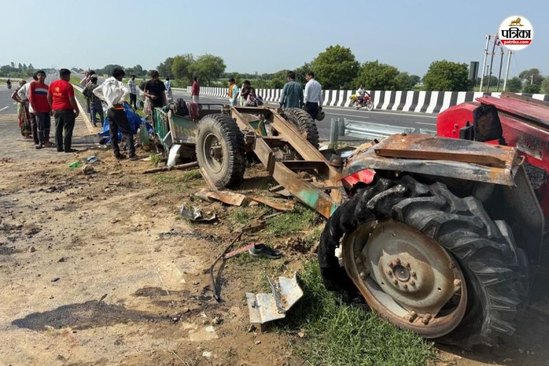 हादसे के बाद क्षतिग्रस्त ट्रैक्टर-ट्रॉली। फोटो: पत्रिका