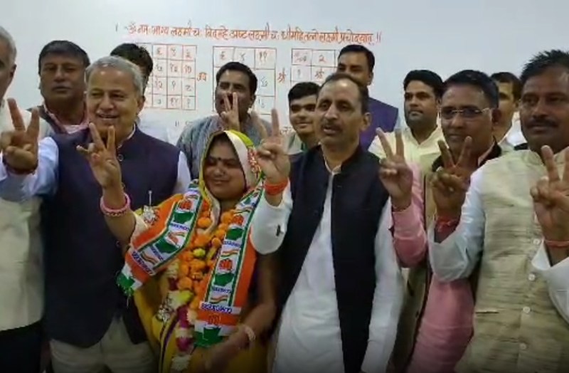 रूपवास (भरतपुर)। रूपवास कस्बे में नगर पालिका के चेयरमैन पद के लिए भाजपा प्रत्याशी के रूप में नामांकन दाखिल करने वाली बबीता खितौलिया शनिवार निर्विरोध निर्वाचित होने के बाद करीब 15 मिनट बाद कांग्रेस में शामिल हो गईं। कांग्रेस खेमे में जाकर उन्होंने बकायदा पार्टी की सदस्यता ग्रहण कर ली। इससे पहले शनिवार को चेयरमैन पद के लिए नामांकन वापसी का अंतिम दिन था। दोपहर दो बजे निर्दलीय प्रत्याशी रूपकला और उसके बाद 2 बजकर 15 मिनट पर कांग्रेस प्रत्याशी अर्चना ने भी अपना नामांकन वापस ले लिया। इसके बाद अंतिम बची भाजपा प्रत्याशी बबीता को निर्विरोध नगर पालिका का चेयरमैन घोषित कर दिया।