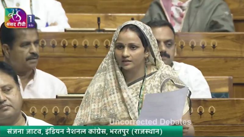 भरतपुर। संसद का मानसून सत्र जारी है। इस दौरान राजस्थान की भरतपुर संसदीय क्षेत्र से चुनी गई प्रदेश की सबसे युवा सांसद संजना जाटव (Sanjana Jatav) ने अपने पहले भाषण में क्षेत्र से जुड़े मुद्दे उठाए। उन्होंने क्षेत्र की जनता का धन्यवाद अदा करते हुए कहा कि उनके क्षेत्र की मौजूदा वक्त की जो सबसे बड़ी समस्या है वह पीने के पानी की है। संसदीय क्षेत्र के शहरी व ग्रामीण इलाकों में पेयजल की भारी समस्याएं है, जो आमजनजीवन को प्रभावित करता है। उन्होंने कहा कि क्षेत्र के अधिकांश हिस्सों में पानी खारा है और यह फ्लोराइडयुक्त है जिसे पेयजल के रूप में इस्तेमाल नहीं किया जा सकता है।