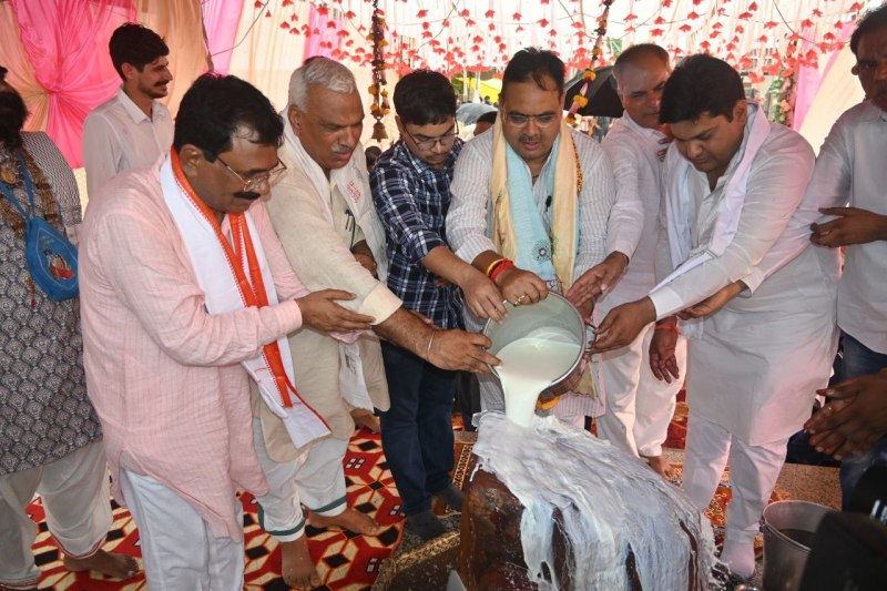 Rajasthan Samachar : भरतपुर. मुख्यमंत्री भजनलाल शर्मा मुडिय़ा पूर्णिमा मेले के मौके पर दो दिवसीय दौरे पर शनिवार को डीग जिले के पंूछरी का लौठा में अपने इष्टदेव श्रीनाथजी पहुंचे। यहां उन्होंने मुखारबिंद पहुंचकर दुग्धाभिषेक कर गिरिराजजी की पूजा-अर्चना की। श्रीनाथ जी मंदिर में दर्शन के बाद सीएम शर्मा ने पूंछरी के सामुदायिक स्वास्थ्य केन्द्र के समीप बने पांडाल में अपने हाथों से गिरिराज महाराज के जयकारों के बीच दोने में प्रसाद वितरित किया। प्रसादी वितरण में श्रद्धालुओं का हुजूम उमड़ पड़ा।