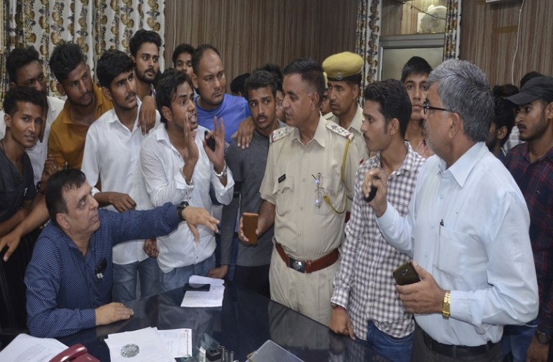 एनसीसी 6 राज में विद्यार्थियों की भर्ती रोकने व निजी कोचिंग संस्थान को फायदा पहुंचाने के लिए नियमविरुद्ध सेना भर्तीअभ्यास दौड़ कराने के विरोध में शुक्रवार को कॉलेज में प्रदर्शन किया। एमएसजे कॉलेज के पूर्व छात्रसंघ अध्यक्ष सुरेन्द्र सांतरुक व विनीत सिनसिनी के नेतृत्व में विद्यार्थियों ने कॉलेज प्राचार्य डॉ. विवेक शर्मासे पूरे मामले की जांच कराने व जल्द से जल्द एनसीसी 6 राज में विद्यार्थियों की भर्तीकराने की मांग की। इस दौरान हंगामा बढ़ता देख मौके पर पुलिस प्रशासन भी पहुंच गया। कॉलेज प्रशासन द्वारा एनसीसी 6 राज में जल्द भर्ती कराने व मामले की जांच के लिए एनसीसी के उच्चाधिकारियों को लिखने के आश्वासन के बाद विद्यार्थी शांत हुए।