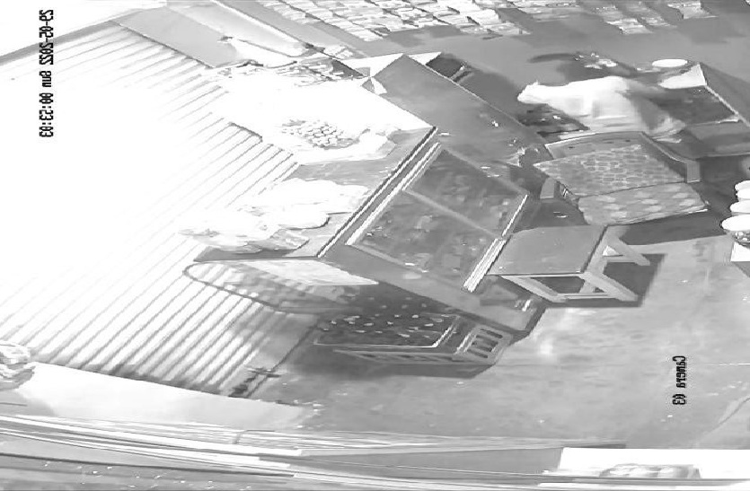 बैकरी मालिक रवि मदेरणा पुत्र जीवनसिंह मदेरणा निवासी मालीपुरा थाना सेवर, हाल निवासी पुराना लक्ष्मण मंदिर थाना अटलबंध ने थाने में दी तहरीर में बताया है कि उसकी दुकान आगरा बैकरी पुराना लक्ष्मण मंदिर थाना अटलबंध में स्थित है। 28 मई की रात करीब साढ़े आठ बजे वह दुकान पर दो ताले, एक अंदर व एक बाहर की ओर से लगाकर दुकान बंद कर घर गया था। दुकान के गल्ले में 24 हजार रुपए रखे हुए थे। रविवार सुबह जब भाई कुलवंत सिंह दुकान खोलने के लिए पहुंचा तो देखा कि शटर ऊंची थी। गल्ले में रखी हुई नकदी करीब 24 हजार रुपए गायब थी। दुकान में रखे हुए सिगरेट, चॉकलेट, रसगुल्ला, बिस्किट आदि के पैकेटों को दुकान में रखे हुए थैले में भरकर बदमाश ले गए। दुकान में सीसीटीवी कैमरे लगे हुए हैं। इसकी रिकॉर्डिंग देखने पर पता चला कि रात करीब 12 बजकर 11 मिनट पर दो बदमाश दुकान के सामने ताकाझांकी कर रहे थे। इसके बाद करीब 12.50 बजे एक बदमाश ने मुंह पर कपड़ा बांधा हुआ है, पैरों में चप्पल पहनी हुई है। शटर तोड़कर दुकान में घुस जाता है। कुछ देर बाद ही सामान व नकदी लेकर दूसरे बदमाश के साथ फरार हो जाता है। बदमाशों ने सामान चोरी करने से पहले रसगुल्ले व बिस्किट भी खाए हैं। साथ कुछ सिगरेटों का भी सेवन किया है। इधर, अटलबंध थाना पुलिस ने मौका मुआयना किया है।