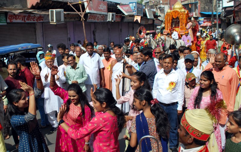 रथ के पीछे सौम्य प्रभा ढाणा-4 श्राविकाओं के साथ चल रहे थे। वरघोडा के पीछे-पीछे रावड दीपक का लाभ सतीश चन्द जैन नगला मई परिवार ने लिया। वरघोड़े के दौरान भगवान के जयकारों एवं भजनों से वातावरण भक्ति मय हो गया। वरघोडा लक्ष्मण मंदिर से प्रारम्भ होकर गंगा मंदिर, बुद्ध की हाट से वापस लक्ष्मण मंदिर होता हुआ मुनिसुव्रत स्वामी मंदिर पर समाप्त हुआ। वरघोडा समाप्ति पर मंदिर में धर्म सभा के रूप में परिवर्तित हो गया। बुधवार प्रात: 8 बजे भव्यातिभव्य 14 प्रतिमाओं की वेदी प्रतिष्ठा एवं गौतम स्वामी गणधर की प्रतिष्ठा का कार्यक्रम होगा।