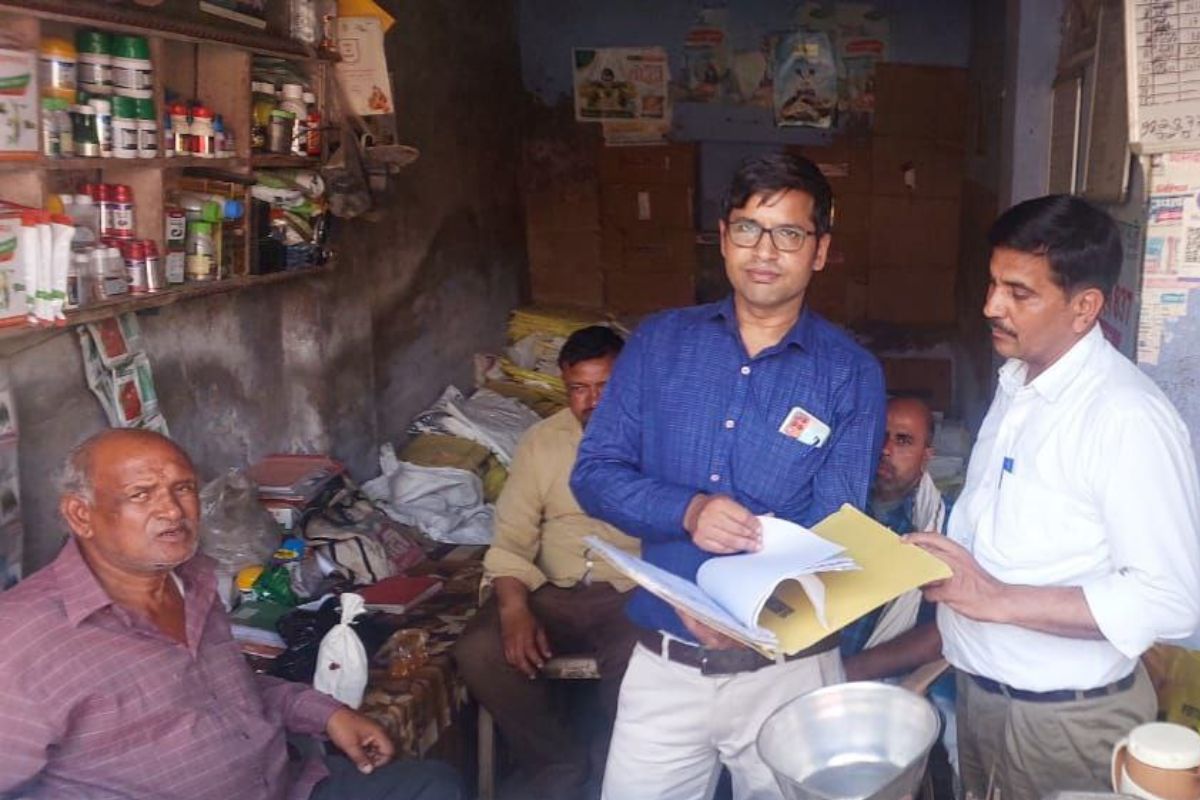 डीग जिले में खाद-बीज की दुकान पर जांच करते विभागीय अधिकारी। फोटो: पत्रिका