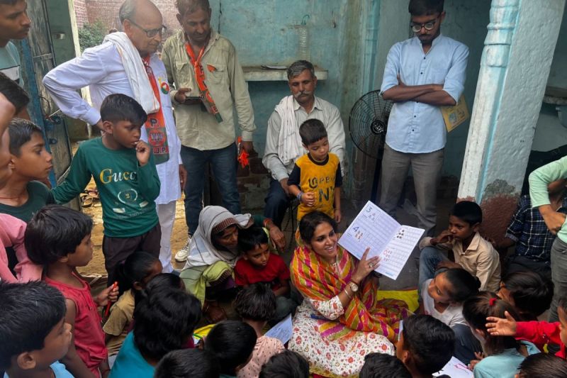राजखेड़ा में बच्चों के बीच मालविका मुदगल.