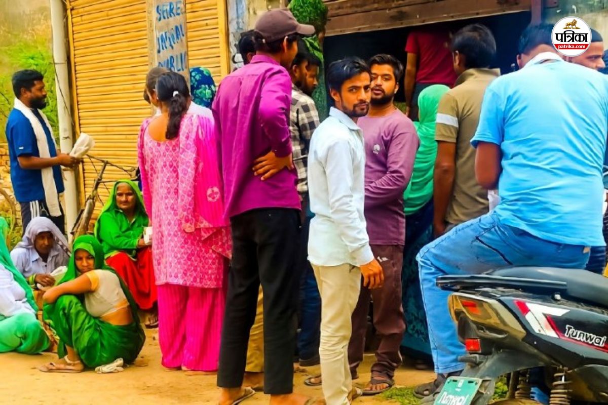 भरतपुर. राशन की दुकान पर गेहूं लेने पहुंचे लोग। फोटो पत्रिका