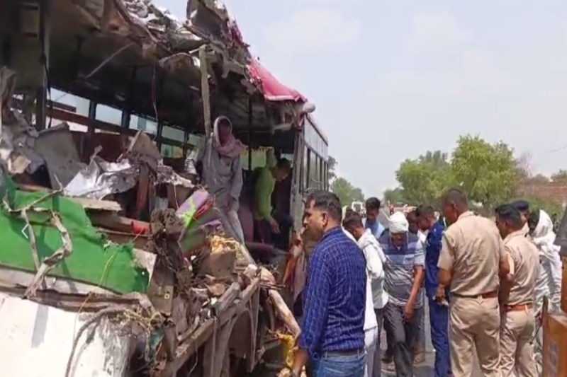 बता दें कि आगरा-बीकानेर नेशनल हाईवे-21 पर हलैना-तिलचिवी के बीच शुक्रवार दोपहर दो बजे ओवरटेक कर रही यूपी रोडवेज की बस लकड़ी से भरे ट्रेलर से टकरा गई। जिसमें बस सवार पांच महिला यात्रियों की मौत हो गई। हादसा इतना भीषण था कि बस का एक तरफ का हिस्सा पूरी तरह से क्षतिग्रस्त हो गया था। घायल 13 यात्रियों को अस्पताल में भर्ती कराया गया है। जबकि बस में सवार अन्य 25 यात्री बाल-बाल बच गए थे। परिचालक सहित आठ घायलों का भरतपुर में उपचार जारी है।
