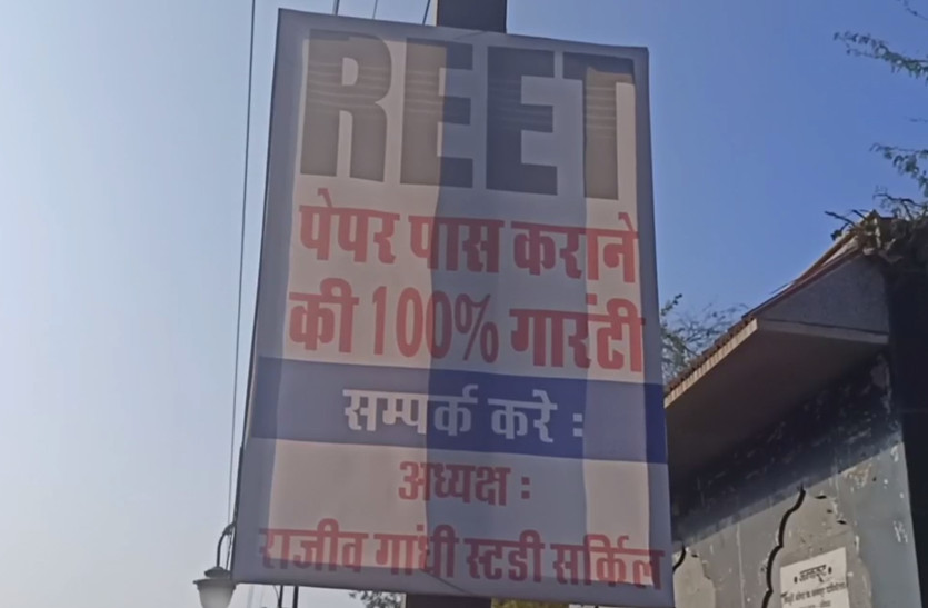 भाजयुमो की ओर से शहर में शुक्रवार देर रात जगह-जगह होर्डिंग लगाए गए। इन पर रीट को लेकर स्लोगन लिखे थे। इन पर लिखा था...पेपर उचित दरों पर उपलब्ध है, स्थान राजीव गांधी स्टडी सर्किल....। सुबह जब लोगों ने होर्डिंग्स और पोस्टरों को देखा तो हड़कंप मच गया। पुलिस अपने स्तर पर पोस्टर-होर्डिंग लगाने वालों की तलाश कर रही है।