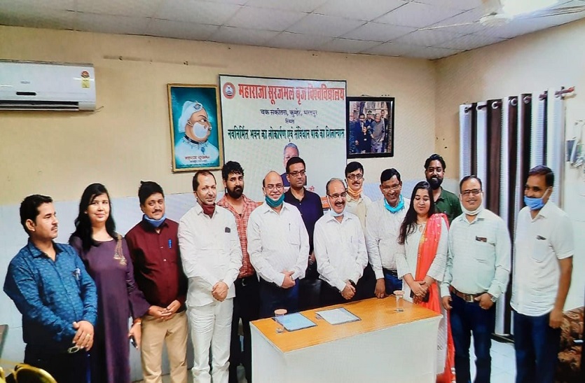 भरतपुर. महाराजा सूरजमल बृज विश्वविद्यालय के 9वें स्थापना दिवस पर रविवार को चक सकीतरा कुम्हेर स्थित नवनिर्मित भवन का लोकार्पण एवं विश्वविद्यालय में प्रस्तावित संविधान पार्क का शिलान्यास राज्यपाल कलराज मिश्र ने ऑनलाइन किया।