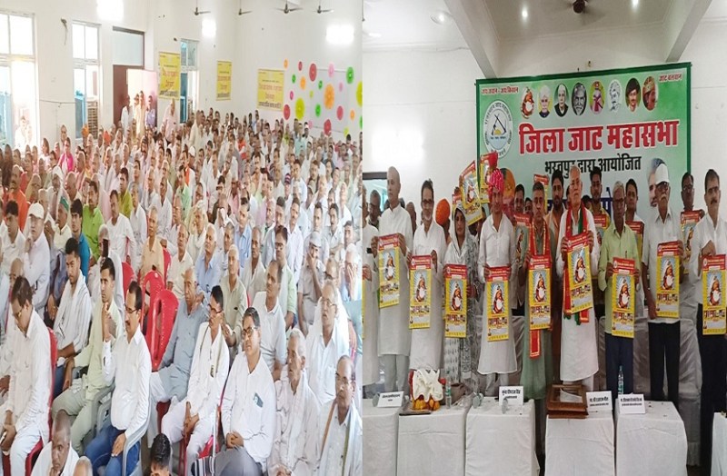 भरतपुर. जिला जाट महासभा की ओर से रविवार को हुए महा सम्मेलन में जाट समाज ने भरतपुर-धौलपुर के जाटों को केंद्र में ओबीसी में आरक्षण, मृत्युभोज बंद करने, राजनीति में स्थान देने समेत विभिन्न मुद्दों को बिगुल बजाया। वक्ताओं ने जाट समाज को आर्थिक व सामाजिक विकास के लिए राजनैतिक रूप से मजबूत बनने का संकल्प दिलाया। जाट हवेली, सर छोटूराम पशुधन सहायक प्रशिक्षण संस्थान के सभागार में राजस्थान जाट महासभा के प्रदेश अध्यक्ष राजाराम मील के मुख्य अतिथ्य व अखिल भारतवर्षीय जाट महासभा के पूर्व राष्ट्रीय महामंत्री इतिहासकार रामवीर सिंह वर्मा की अध्यक्षता में हुए जाट महा सम्मेलन हुआ। महासम्मेलन का शुभारंभ अखिल भारतवर्षीय जाट आरक्षण संयुक्त संघर्ष समिति के राष्ट्रीय अध्यक्ष एचपी सिंह परिहार, मथुरा जिला महापंचायत के अध्यक्ष चौधरी किशन सिंह एवं प्रमुख उद्योगपति दीपराज सिंह, रज्जन सिंह ताखा ने महाराजा सूरजमल के चित्र के समक्ष दीप प्रज्वलन एवं माल्यार्पण कर किया।