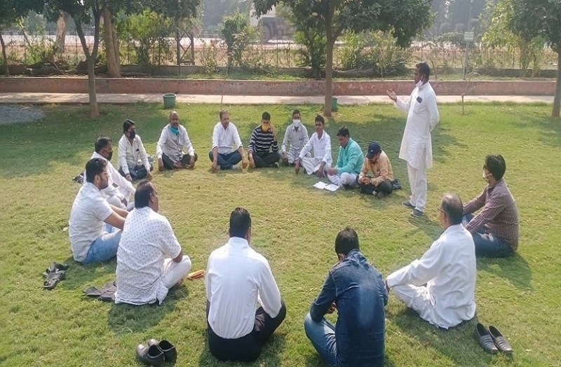 काली बगीची स्थित एक प्रतिष्ठान पर पार्षदों की बैठक की गई। बैठक में अध्यक्षता पार्षद मोती सिंह ने की। पार्षद प्रकाश ने कहा कि आयुक्त ने आज तक मेरे वार्ड में कई बार कहने पर भी वार्ड का निरीक्षण नहीं किया। पार्षद कपिल फौजदार ने कहा कि कच्चे डण्डा एवं स्टेट ग्रान्ट एक्ट में पट्टे जारी करने की जमा फाइलें निगम में धूल खा रही हैं लेकिन निगम प्रशासन की तानाशाही के चलते पट्टों को एक जनप्रतिनिधि के इशारे पर जानबूझकर रोककर रखा गया है। बैठक में सभी पार्षदों ने एक राय होकर दो नवंबर को कलक्ट्रेट के सामने राज्यमंत्री व आयुक्त दोनों का पुतला जलाने का निर्णय लिया।