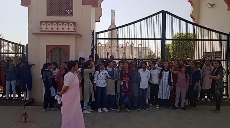 परीक्षा केंद्र बदलवाने की मांग कर रही छात्राओं एवं कॉलेज स्टाफ ने विश्विद्यालय के सभी दरवाजों पर ताला लगा दिया। जिसके कारण किसी भी विश्विद्यालय के कर्मचारियों एवं सुरक्षा गार्डों को भी अंदर नहीं जाने दिया और तीन घण्टे तक विश्विद्यालय में प्रवेश तक नहीं करने दिया।हर रोज हो रहे आंदोलन से पढ़ाई बाधित
