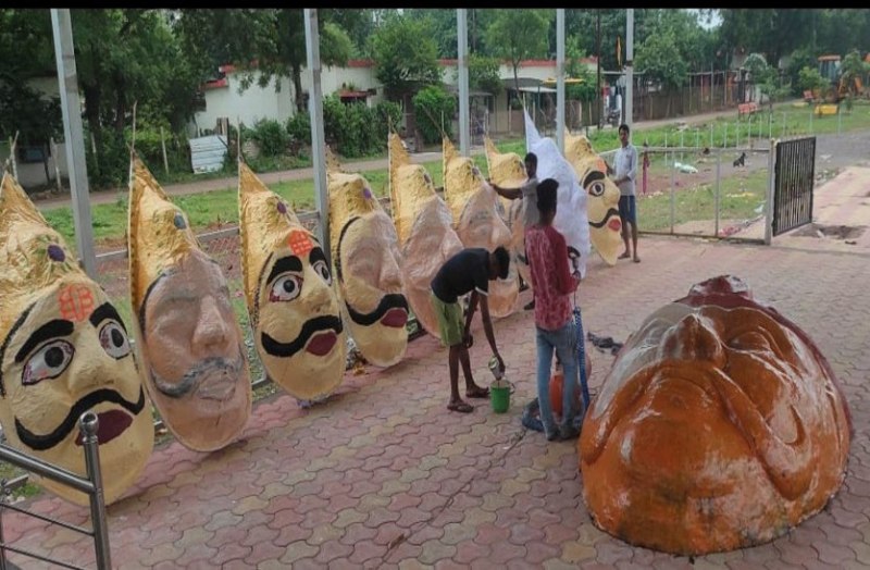 चरोदा में 55 फीट ऊंचे रावण का पुतला किया जा रहा तैयार
