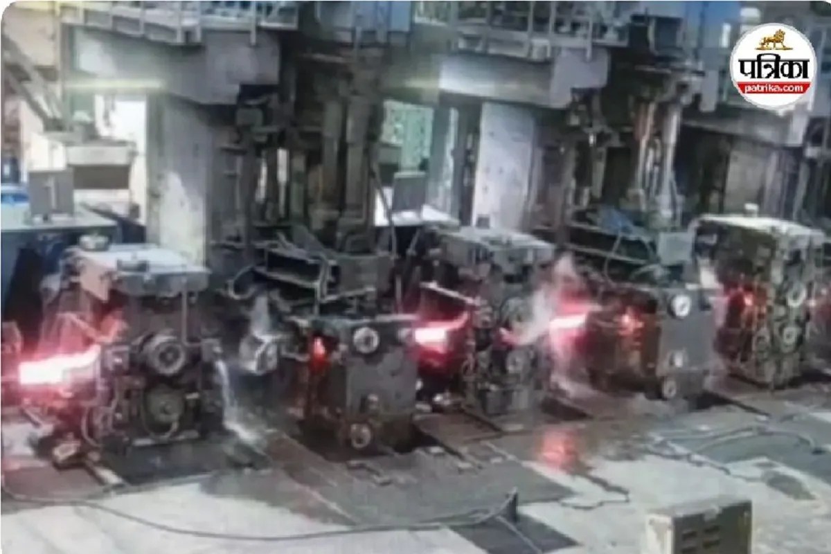 रोलिंग के दौरान गड़बड़ी! बिलेट टकराया मशीन से, टूटा स्टैंड-2 का फाउंडेशन(photo-patrika)