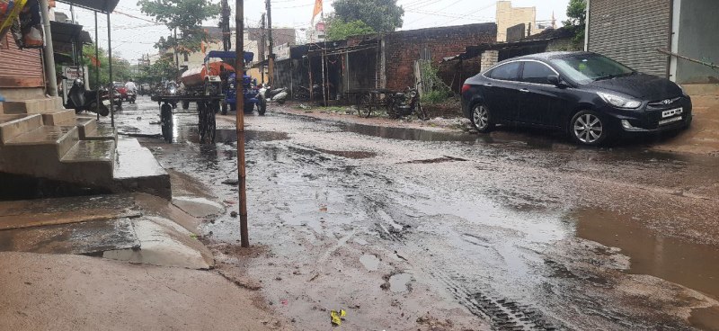 बारिश होने के साथ ही लक्ष्मी मार्केट में रोड पर नाली का गंदा पानी भर गया। यहां हर साल बारिश होते ही निकासी व्यवस्था दुरुस्त नहीं होने की वजह से नाली का गंदा बदबूदार पानी सड़क पर आ जाता है। वैसे ही इस साल भी गंदा पानी सड़क पर आ गया। इससे यहां से गुजरने वालों को जहां परेशानी हो रही थी। वहीं इस सड़क पर मौजूद दुकानदारों को भी दुकान खोलना किसी चुनौती से कम नहीं था। नाली का गंदा पानी लोगों के दुकानों तक पहुंच रहा था।