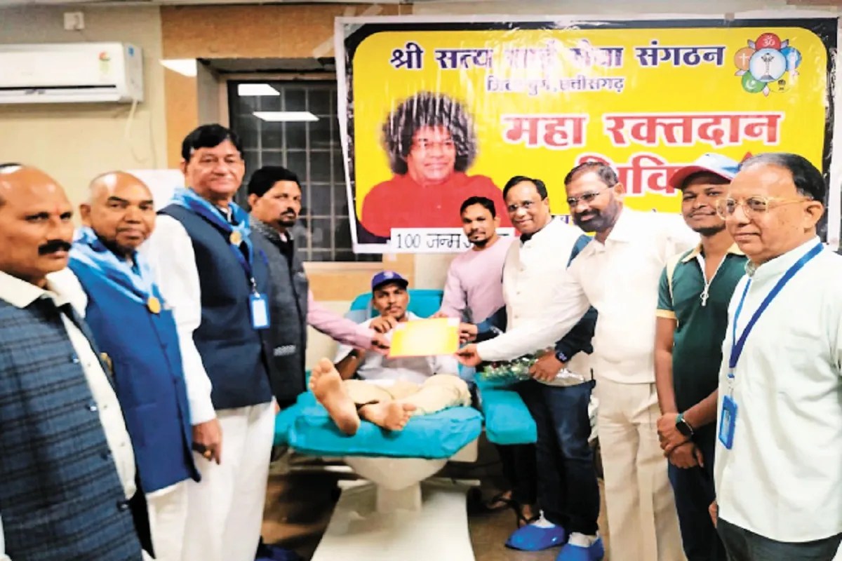 नगर की आध्यात्मिक व सेवा कार्यों में अग्रणी श्रीसत्य साईं सेवा समिति दुर्ग ने भगवान श्रीसत्य साई बाबा के जन्मोत्सव शताब्दी वर्ष में रक्तदान शिविर जिला चिकित्सालय के ब्लड बैंक में आयोजित किया। समिति के मेडिकल कॉर्डिनेटर दिलीप ठाकुर ने बताया कि शिविर में समिति के युवा साई भक्त, छत्रपति इंजीनियरिंग कॉलेज व कल्याण कॉलेज के छात्रों ने रक्तदाता की भूमिका निभाई।