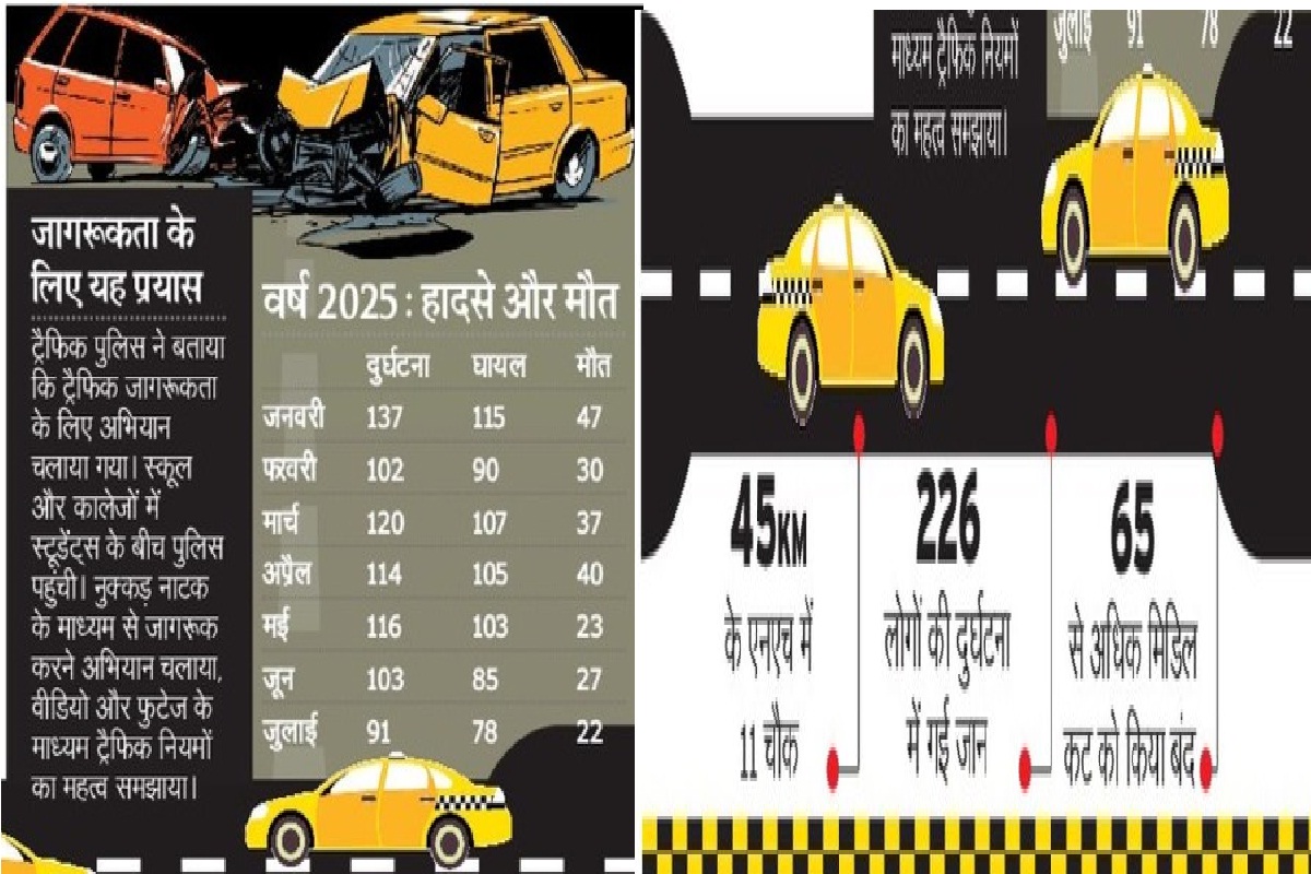 ट्रैफिक पुलिस ने बताया कि ट्रैफिक जागरूकता के लिए अभियान चलाया गया। स्कूल और कालेजों में स्टूडेंट्स के बीच पुलिस पहुंची। नुक्कड़ नाटक के माध्यम से जागरूक करने अभियान चलाया, वीडियो और फुटेज के माध्यम ट्रैफिक नियमों का महत्व समझाया।
