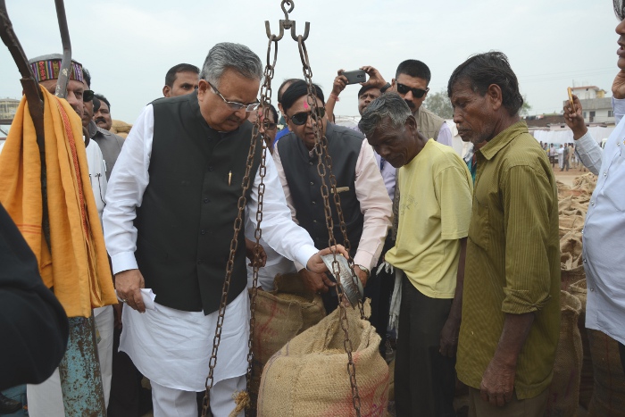 मुख्यमंत्री डॉ. सिंह ने केन्द्र में धान बेचने आई मगरलोटा गांव की किसान कमलादेवी का धान तौल के लिए रखा। इस किसान की धान को सीएम ने तौलने के साथ ही किसानों से बातचीत भी की। उन्होंने कहा कि सरकार अन्नदाता के उपजाए एक-एक अन्न के दाने का महत्व समझती है। उन्होंने कहा कि इस बार बोनस तिहार के अवसर पर किसानों के चेहरे में जो खुशी दिखी, उससे बहुत संतोष मिलता है।