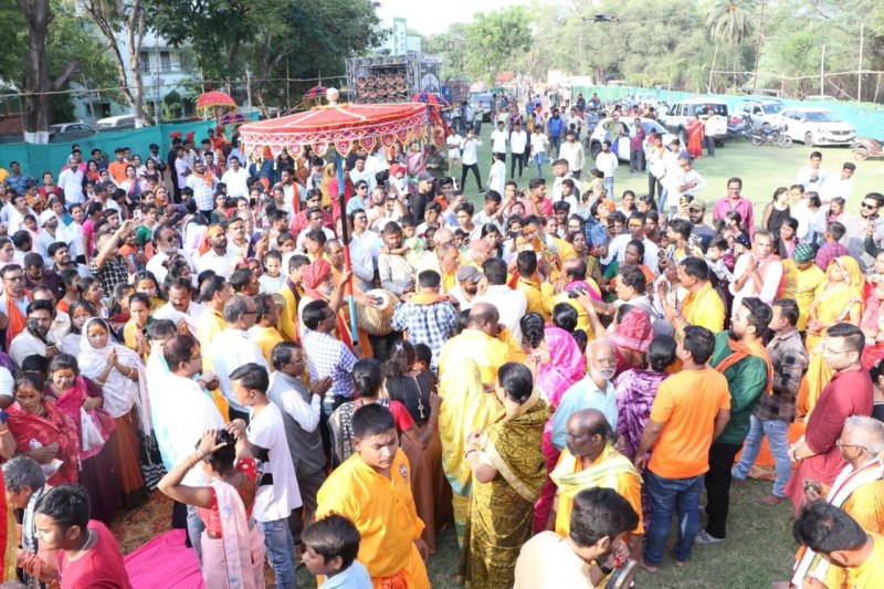 धुन में नाचते-गाते भक्त