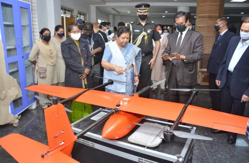 दुर्ग. राज्यपाल अनुसुईया उईके रविवार को स्वामी विवेकानंद टेक्निकल यूनिवर्सिटी डिजिटल मूल्यांकन सिस्टम के निरीक्षण के लिए पहुंची। उन्होंने सीएसवीटीयू (CSVTU) भिलाई के ऑडियो-वीडियो स्टूडियो का उद्घाटन किया। इस मौके पर सीएसवीटीयू द्वारा गोद लिए गए 42 गांवों पर रिपोर्ट प्रस्तुत की गई। इंजीनियरिंग और डिप्लोमा स्टूडेंट से चर्चा भी की। राज्यपाल ने यहां अल्ट्रा हाई रिवॉल्यूशन यूएवी मैपिंग मशीन का मुआयना किया। जिसमें वाइस चांसलर डॉ. एमके वर्मा ने राज्यपाल को बताया कि यह मशीन सर्वे और मैपिंग कार्य के लिए उपयोग में लाई जाती है। इसकी क्वालिटी सेटेलाइट इमेज से कई गुना बेहतर होती है। इससे एक मिनट में लगभग 35 एकड़ भूखंड की मैपिंग संभव है। राज्यपाल ने पीडब्ल्यूडी डिपार्टमेंट, अर्बन डेवलपमेंट, वॉटर रिसोर्सेस एंड इरिगेशन डिपार्टमेंट, एग्रीकल्चर डिपार्टमेंट और पब्लिक हेल्थ इंजीनियरिंग एंड रुरल इंजीनियरिंग डिपार्टमेंट, रेवेन्यू डिपार्टमेंट, फॉरेस्ट डिपार्टमेंट और माइनिंग डिपार्टमेंट के लिए इस मशीन को बहुत ही उपयोगी बताया और कहा कि मास्टर प्लान के डिजाइन के लिए ऐसी मशीनें बहुत ही उपयोगी सिद्ध होगी। विशेष रुप से रिवेन्यू, फॉरेस्ट और माइनिंग डिपार्टमेंट के लिए यह और भी उपयोगी होगी।