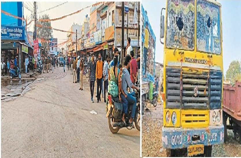 भीड़ ने हाइवा में की जमकर तोडफोड़