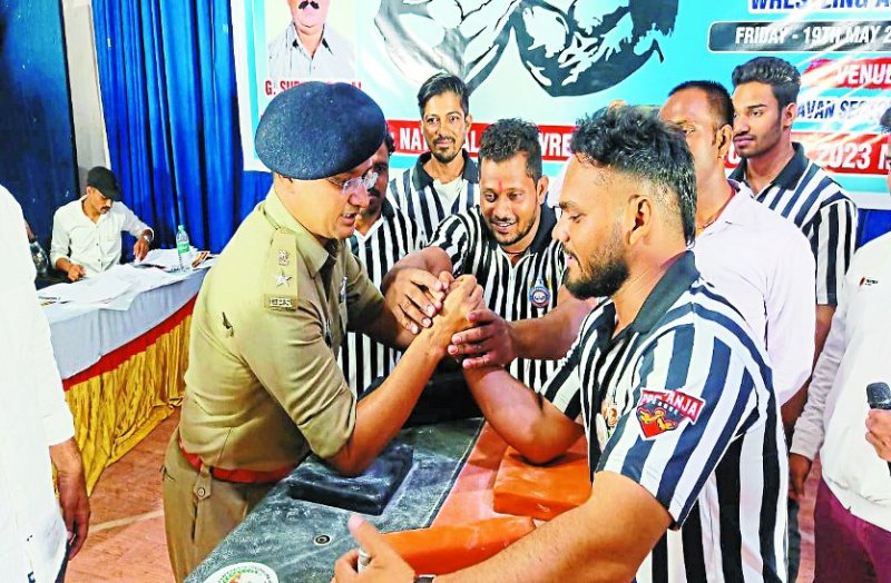 एमपी के रोहित से मुकाबला कर स्पर्धा की शुरुआत करते एसपी डॉ. अभिषेक पल्लव