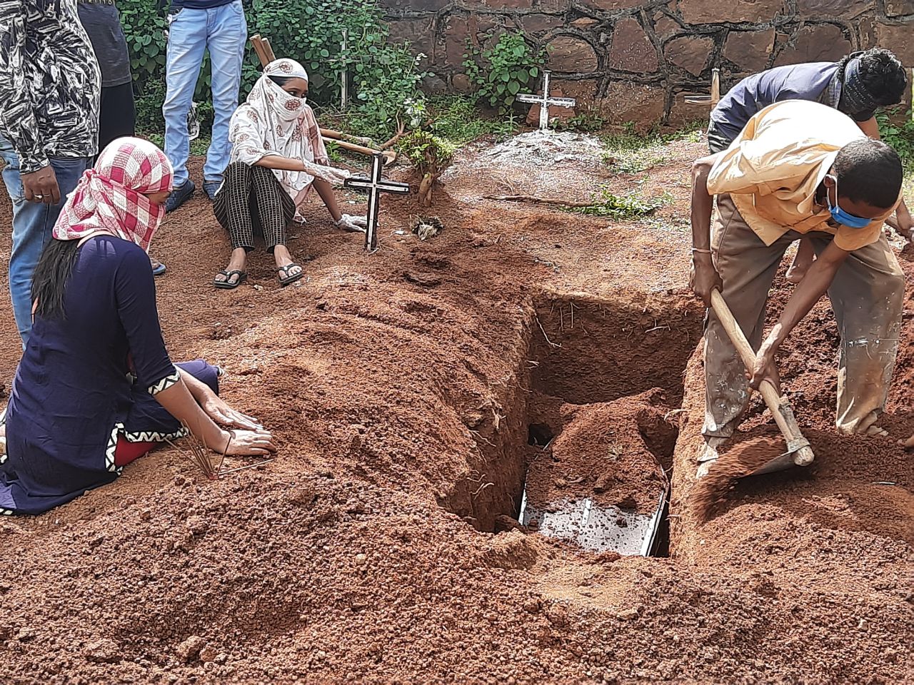 पीपीई किट पहनकर फादर ने ईश्वर की ओर हाथ उठाकर मृत आत्मा के लिए दुआ मांगा तेरी अमानत लौटा रहे हैं। जिस मिट्टी से आया उसमें ही मिल जाना है। दोनों बच्चों के आने वाले भविष्य को लेकर भी फादर ने दुआ मांगा। मौजूद लोगों ने भी मृत आत्मा के लिए दुआ मांगा। अंत में दो-दो मुट्ठी मिट्टी देकर सब लौट गए।