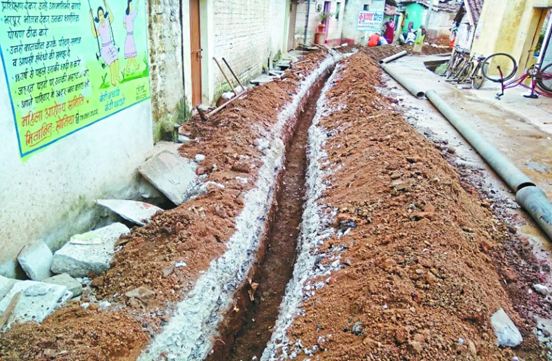 पाइप लाइन बिछाने खोद दी 16 लाख की सड़क