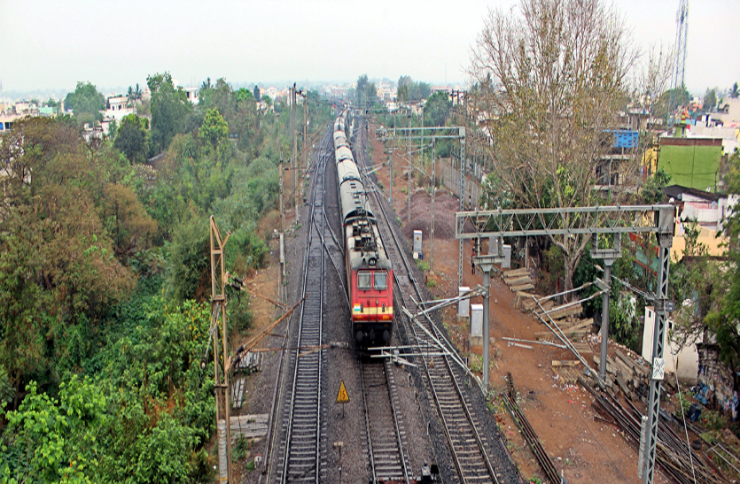 रेलवे ट्रैक के एक तरफ घनी झाडिय़ां