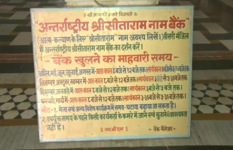 International Sri Sitaram Bank : अंतरराष्ट्रीय श्रीसीताराम बैंक भिलाई में 41 साल से संचालित हो रहा है। टाउनशिप के सेक्टर-2 स्थित श्रीरामभद्र सेवा मंडल के आचार्य प्रेम नारायण शर्मा ने 1983 में इस बैंक को स्थापित किया था। यह मंदिर और मंडल सीधे अयोध्या के श्रीसीताराम नाम बैंक से जुड़ा हुआ है। इसमें श्रद्धालु सीताराम मंत्र का लेखन कर अपना बुक जमा करवाते हैं। 1883 से यह कार्य श्रीरामभद्र सेवा मंडल करता आ रहा है।