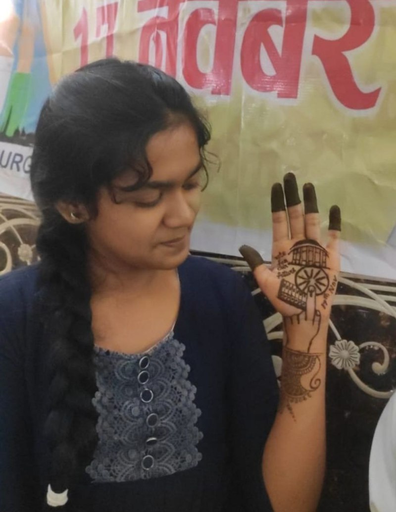 मेहंदी रचाकर महिलाओं ने कहा जरूर करे मतदान