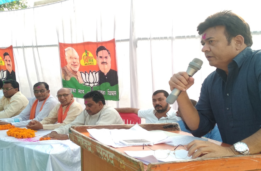 भिलाई/सेलूद. कथित अनुशासित भारतीय जनता पार्टी की ओर से पंडित दीनदयाल उपाध्याय की जयंती कार्यक्रम में भी नेताओं ने विपक्षी कांग्रेस पार्टी को कोसने से गुरेज नहीं किए। पाटन विकास खंड के ग्राम सेलूद में मध्य पाटन मंडल द्वारा पंडित दीनदयाल की जयंती मनाई गई। इस कार्यक्रम में दीनदयाल की जीवनी और विचारधारा का बखान किया वहीं क्षेत्रीय विधायक और पीसीसी चीफ पर भी जमकर हमला बोला गया। पार्टी के दुर्ग जिला महामंत्री देवेंद्र चंदेल ने कहा कि पीसीसी चीफ और विधायक भूूपेश बघेल ने फर्जी सीडी बनवाकर राज्य सरकार के मंत्री को बदनाम करने का दुष्कृत्य किया है। ऐसे विधायक माफी के लायक नहीं है। उन्होंने कार्यकर्ताओं से आह्वान किया कि वे जब जेल से छूटकर आए तो जूते की माला पहनाकर स्वागत करें। उन्होंने भाजपा के दुर्ग जिले के सभी मंडल अध्यक्षों को आदेशित भी किया है जब वे जेल से वापस आए तो उन्हें भी कालाझण्डा दिखाए।