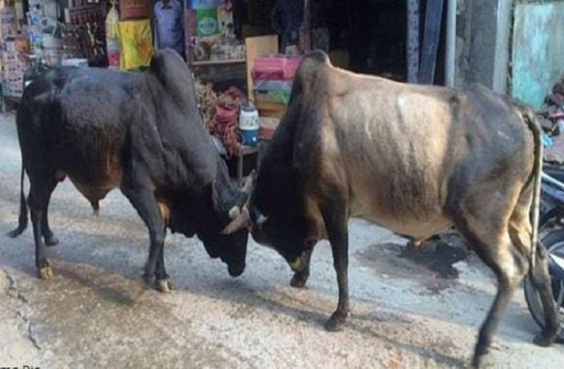 दो सांडों की लड़ाई में महिला की मौत