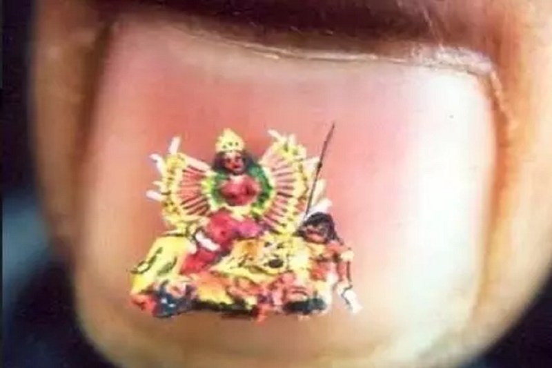 Navratri 2024: छोटी मूर्ति बनाकर राष्ट्रीय और अंतरराष्ट्रीय स्तर पर पहचान बनाने वाले प्रसिद्ध मूर्तिकार डा. अंकुश देवांगन ने इस नवरात्रि पर मां दुर्गा की दुनिया में सबसे छोटी मूर्ति बनाई है। 24 हाथों वाली शेर पर सवाल महिषासुर मर्दनी की यह नयनाभिराम प्रतिमा मात्र एक सेन्टीमीटर छोटी है जिसे उंगली के नाखून पर रखकर फोटो लिया गया है। संगमरमर पत्थर को तराशकर बनाए गए इस सूक्ष्मतम कलाकृति में कलाकार ने दो राक्षस, एक भैंस, एक शेर तथा माता के हाथो में विभिन्न अस्त्र-शस्त्रों को बड़े ही करीने से तराशा है।