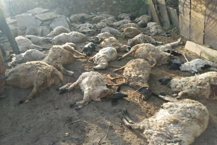 बंद बाड़े में 48 भेड़ों की मौत हो गई।