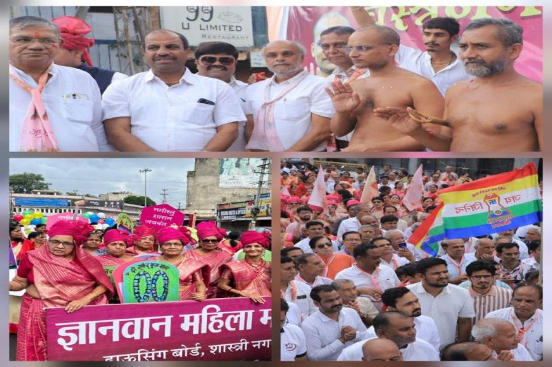 Amidst the rain, the city residents gathered to welcome the Digambar Jain saints