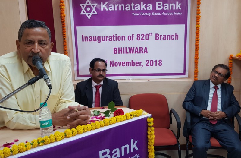 दिल्ली रीजन के डिप्टी जनरल मैनेजर रविचंद्रन एस ने कहा कि कर्णाटका बैंक की 820 शाखाओं में राजस्थान की नवी शाखा का उद्घाटन हुआ है। आभार भीलवाड़ा मैनेजर देवासीस साहा ने जताया। इस दौरान माहेश्वरी समाज प्रदेश अध्यक्ष कैलाश कोठारी, महेश सेवा समिति अध्यक्ष राधेश्याम चेचाणी, उप सभापति देवकरण गगड़, केदार जागेटिया प्रकाश गंगवाल, बार एसोसिएशन अध्यक्ष राजेन्द्र कचौलिया आदि उपस्थित थे।