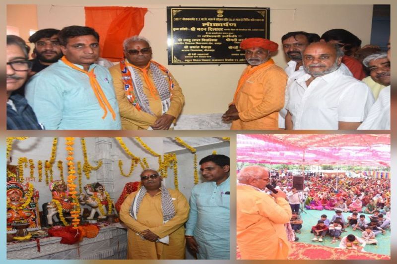 Bhilwara news : शिक्षा एवं पंचायती राज मंत्री मदन दिलावर शुक्रवार को भीलवाडा जिले के दौरे पर रहे। उन्होंने रायपुर तहसील के नाथडियास में देवनारायण भगवान की प्राण प्रतिष्ठा कार्यक्रम में हिस्सा लिया। इस दौरान दिलावर ने कहा कि पत्थर की बनाई प्रतिमा में प्राणों की प्रतिष्ठा होने के बाद वह पूजनीय हो जाती है। गाय दयनीय नहीं पूजनीय है। इसकी सेवा कभी व्यर्थ नहीं जाएगी। हम सबको प्रण करना है कि जिस घर में गाय हैं पूरी देखभाल करने की जिम्मेदारी के साथ क्षेत्र को प्लास्टिक मुक्त बनाएं। इससे मुख पशु काल का ग्रास नहीं बने।
