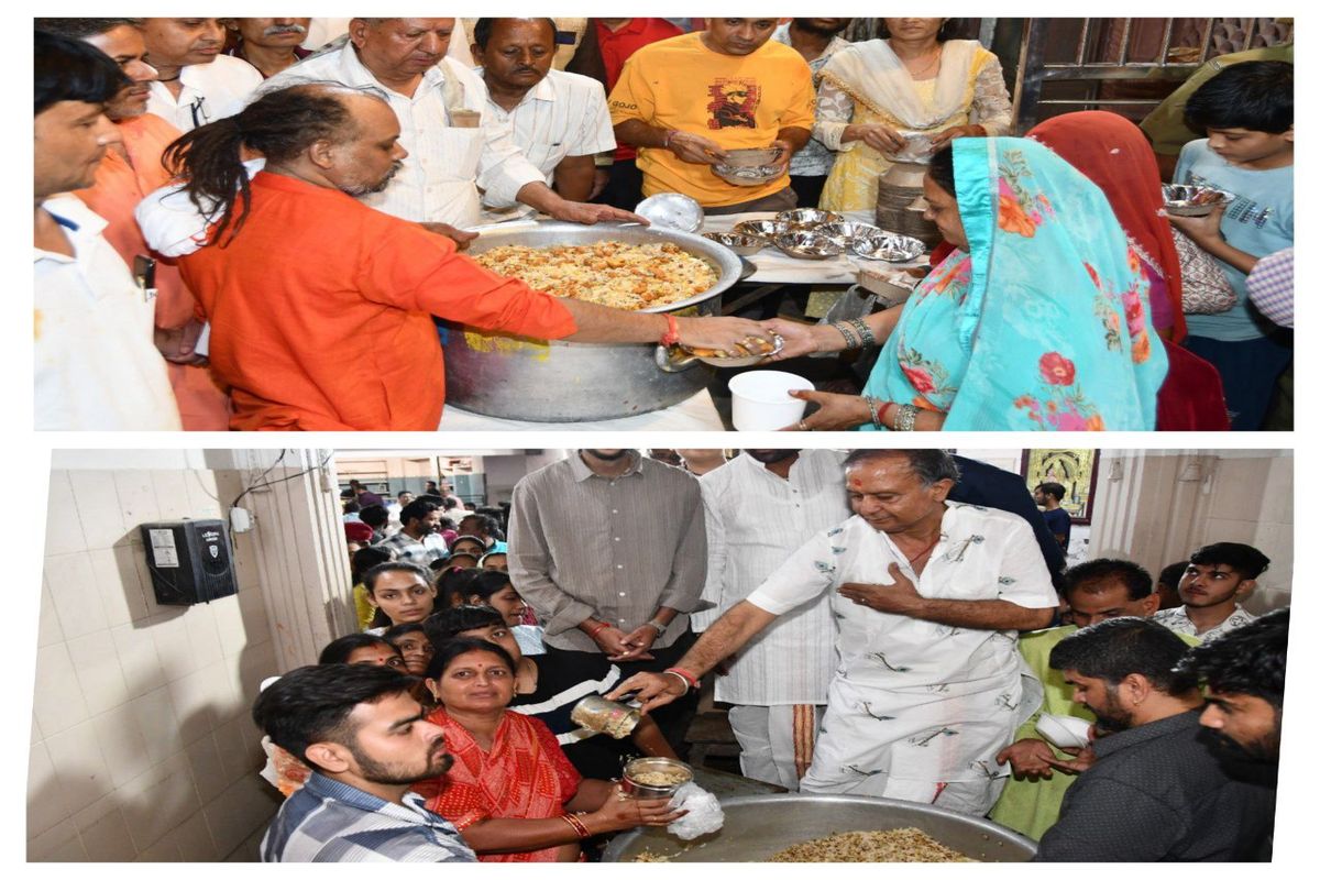 अन्नकूट के प्रसाद के लिए लगी कतारें