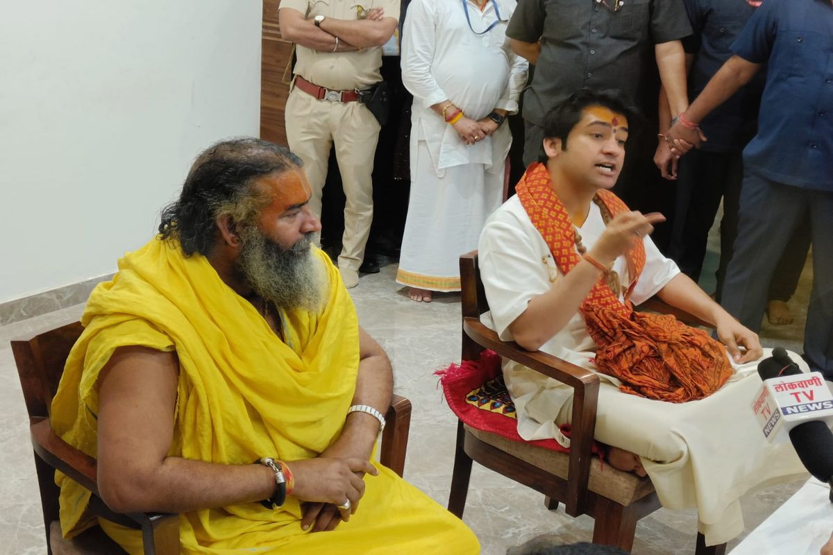 Bhilwara news : भीलवाड़ा में बागेश्वर धाम के पीठाधीश्वर पंडित धीरेंद्र कृष्ण शास्त्री ने कहा कि धर्म से राजनीति चलती है, ना कि राजनीति से धर्म। दुर्भाग्य है कि हमारे नेता धर्म से राजनीतिक रोटियां सेकते हैं। हम किसी पार्टी के सहयोगी नहीं है। हमारी पार्टी बजरंग बली है, जिसका चिह्न घोटा है। हरणी महादेव रोड स्थित रामेश्वरम में गुरुवार को मीडिया से शास्त्री ने कहा कि वे सनातन व हिंदुओं को जगाने में लगे हैं। सनातन बोर्ड का गठन होना चाहिए क्योंकि वक्फ बोर्ड देशभर में जमीनें हड़प रहे हैं। वक्फ बोर्ड बंद होने चाहिए।
